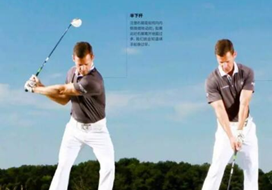 良好的腿部动作可以转化为球手增加力量的利器,带来干净利落的击球点。 半下杆 注意右脚向内侧微微转动。如果此时右脚离开地面过多,说明下杆时起身过早。 击球时右脚尽可能长时间停留在地面,过早的腿部动作对挥...