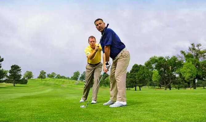 用两支球杆分别放在球的一侧和双脚的连线,并使它们保持平行,一支代表目标线,一支代表身体的指向。在这种状态下练球,会大大提高我们的练习效率,在下场时更容易做出正确的瞄准。