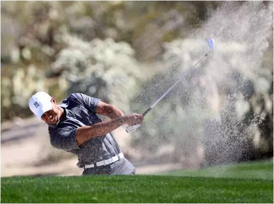 在沙坑用不同的球杆击球是一个很大的挑战,比如劈杆、9号、7 号或者5号铁杆。在沙坑击球必须开放杆面,球位靠前左脚,目的是找出怎样的挥杆能够将球击出沙坑,并获得特定的距离,这在球道沙坑中颇有用处。