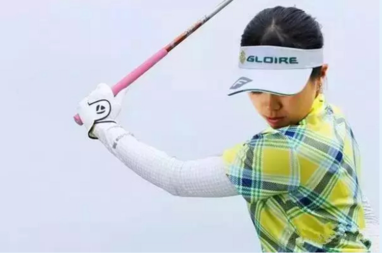 当上挥到顶点时,你可以用左手的大拇指感受球杆的重量,这是预估挥杆各个时间点的重要依据,如果没有以适当的力度握杆,很难用大拇指感受杆身的力量。