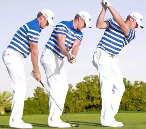 2.在上杆过程中杆身会经过水平位置,在这一点杆身指向目标左侧。这是挥杆路径的最好诠释,同时也表示球杆会沿这条线完成挥杆;如果可以保证杆面方正,那么一切就会很完美。