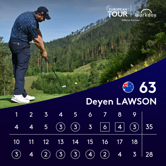 世界排名第795位的劳森捉下9只小鸟,吞下2个柏忌,打出63杆(-7),冲上了欧拉姆银行公开赛的榜首。这位29岁的澳大利亚球手赛后表示:“这里的风景很美丽,所以当你有点沮丧的时候,你只需要环绕四周,让你的大脑远离高尔夫。总的来说,这是一个美好的开始,在首轮之后,这个位置很有利。”