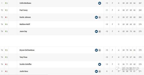 五位选手以270杆,低于标准杆10杆,并列位于第四位,包括前冠军简森-戴伊(66杆)、布赖森-德尚博(66杆)、马修-沃尔夫(65杆)、托尼-弗诺(66杆)以及斯科蒂-舍夫勒(68杆)。