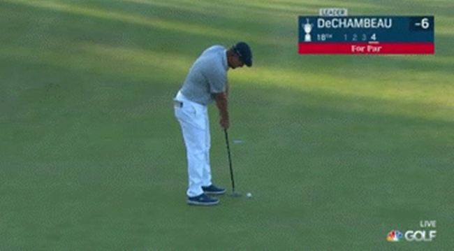 带着3杆领先,德尚博不断向前冲,如同他说过的,好似他并没有领先,而是在追赶某个人似的。他从14号洞左边的深长草中救到了一个帕,顺着15号洞往下走的时候喝了又一杯蛋白质奶昔,最终以打破条条框框的方式取得大满贯胜利,证明了他决定的正确。