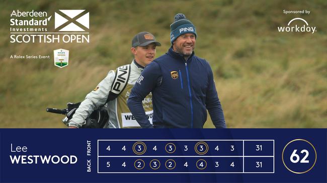北京时间10月2日消息,前世界第一李-维斯特伍德周四在文艺复兴俱乐部(The Renaissance Club)轰出无柏忌的62杆(-9),以一杆优势获得了欧巡劳力士系列赛-苏格兰公开赛首轮的领先,有望继22年之后再度夺取苏格兰公开赛的桂冠,而中国双雄李昊桐和吴阿顺分别排在并列第14位和并列第39位。